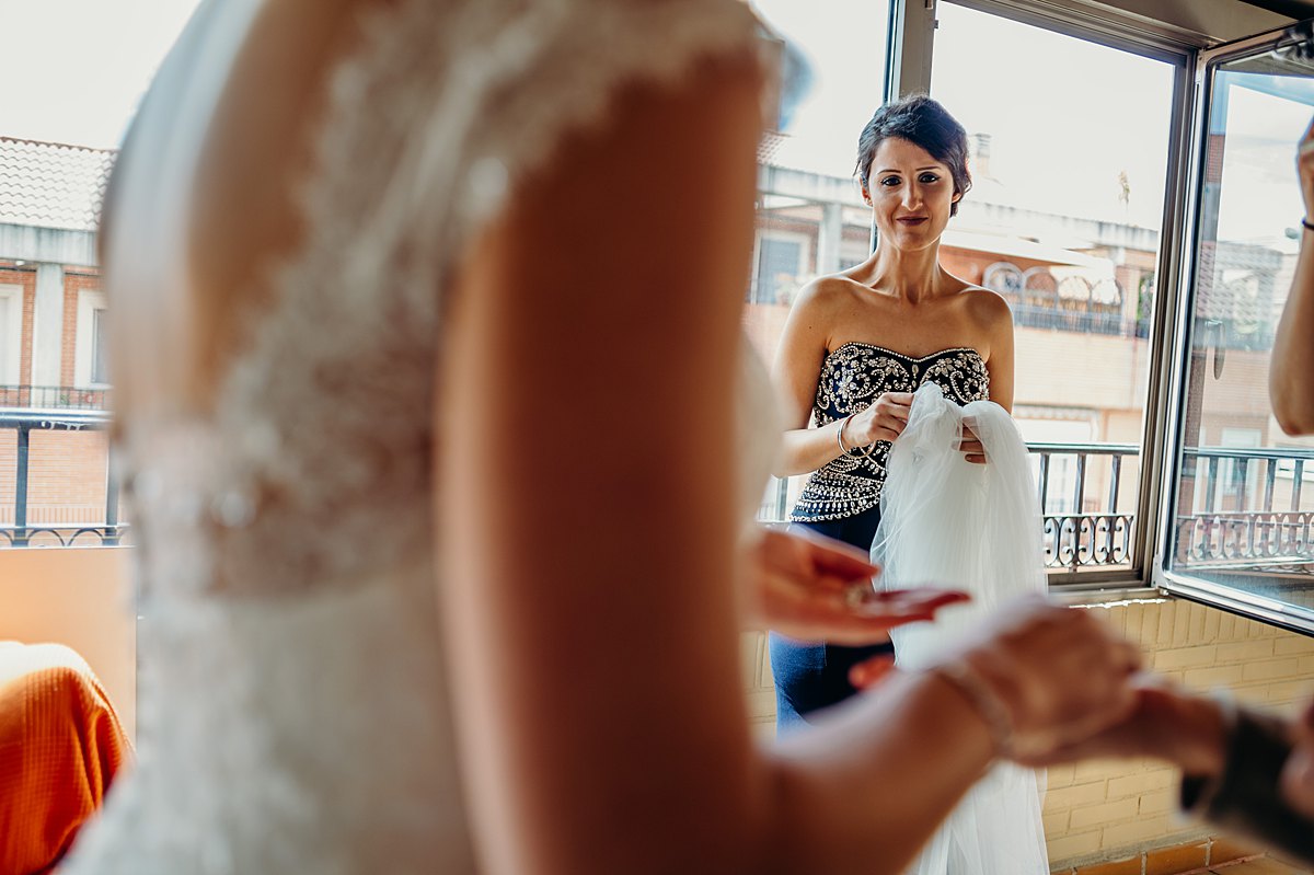 Nadja, se vistió en un piso que habían alquilado para sus padres cerca del lugar de celebración. Llevaba un precioso vestido de Pronovias.