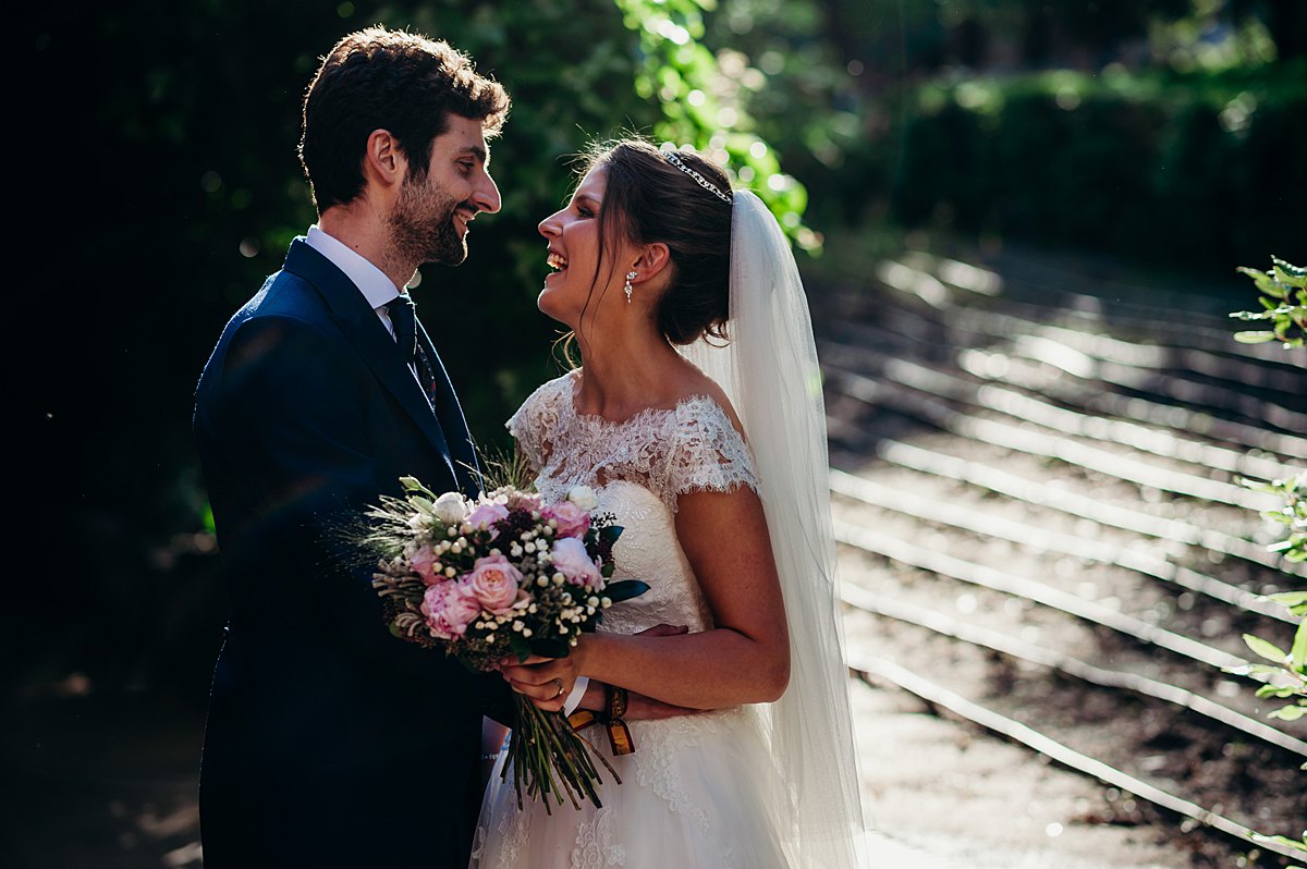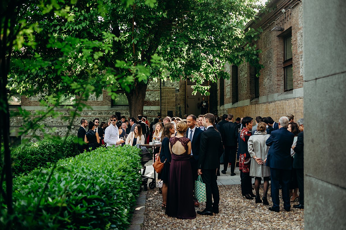 Tras la ceremonia, y a pocos metros andando, llegaron a la Real Fábrica de Tapices, una maravilla arquitectónica situada en el corazón de Madrid, un lugar diferente donde hay todo tipo de ambientes en uno sólo, desde su espectacular jardín histórico, pasando por sus salones históricos, sin dejar de deslumbrarnos sus alfombras y tapices originales y por supuesto, por ser un lugar histórico en pleno corazón de Madrid.